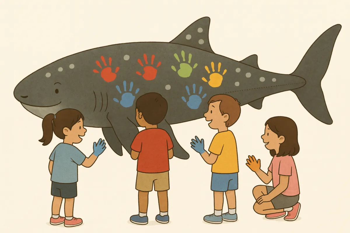 子どもたちと共に創り上げる、巨大なジンベイザメアート