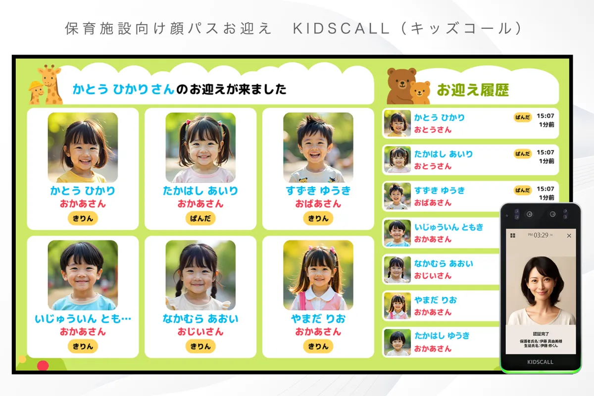 『KIDSCALL』は、保護者が顔をカメラで認識されることで、迅速かつ安全にお迎えができるサービスです。これにより、保育士の皆さんはお子さんの受け渡しにかかる時間を短縮でき、業務をスムーズに行えます。