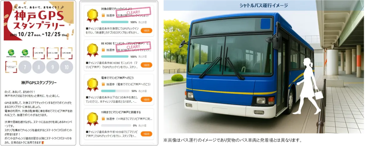 本施策の一部として、参加者にはスタンプラリーが提供されます。神戸市の18歳以上の市民が対象となり、「スマートライフパス」に登録することで、スタンプラリーに参加することが可能です。GPSを使用したチェックイン機能により、時間帯の変更や公共交通機関の利用を行うことでインセンティブが獲得できる仕組みです。