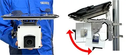 「FWC」は、国土交通省が定めた簡易型河川監視カメラの規格に基づいて設計されています。このカメラの最大の特長は、低電力設計によりソーラーパネルと内蔵バッテリーで動作することです。これにより、雨天や曇天でも、5分間隔での撮影で最長7日間の連続稼働が可能です。また、最低被写体照度が0.02lxという高感度性能を誇り、暗所でもフラッシュなしで鮮明な画像を取得します。