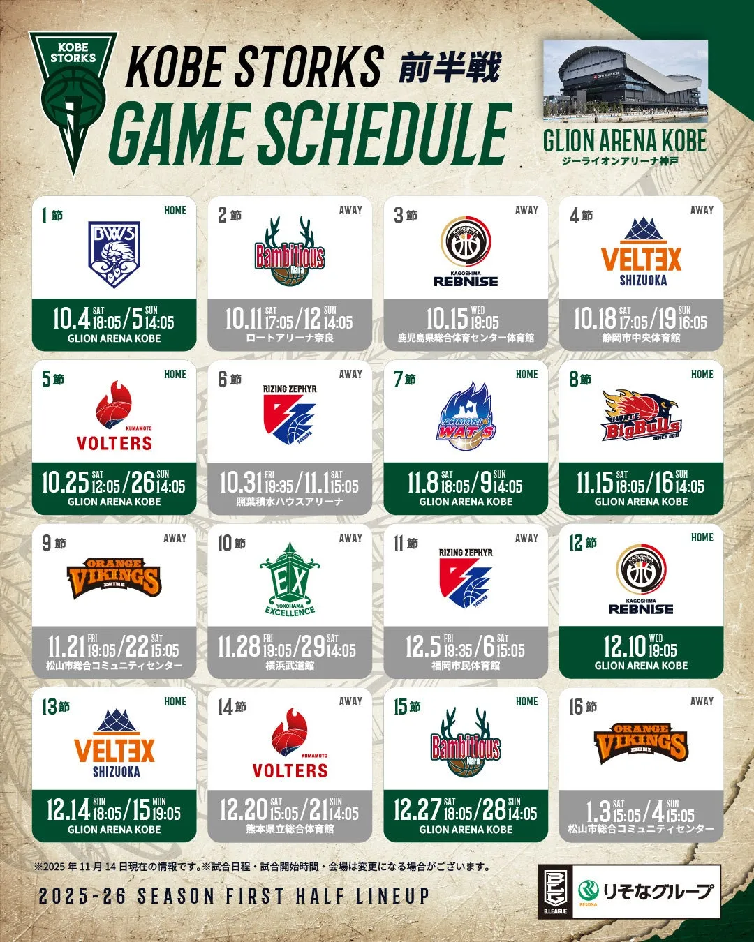 2025-26シーズン後半戦の神戸ストークス試合開始時間決定のお知らせ