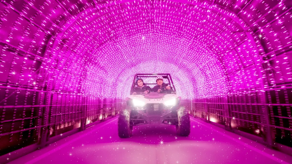 「クリスタル・ウィンター・バギー」は約30分間の体験コースを提供。ホテルを出発後、参加者はまず美しい光の演出エリアを通過します。色とりどりの光がトンネル状に連なり、幻想的な空間が開かれる中、冬の澄んだ空気のもとでバギーを運転します。この特別なナイトアクティビティでは、親子やカップルがお互いと共に思い出を作りながら、光と自然の融合した体験を絶え間なく楽しむことができるのです。