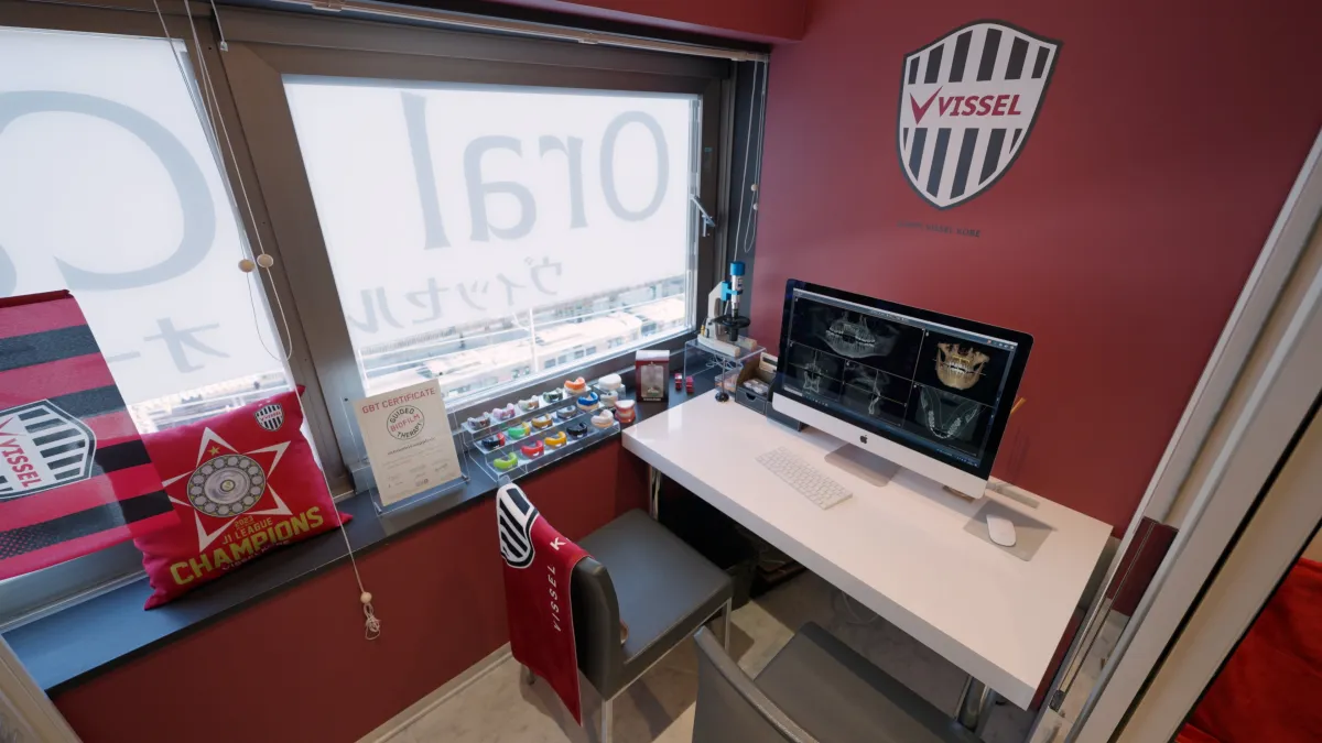「VISSEL Oral Care Clinic」は、サッカークラブ・ヴィッセル神戸のクラブカラーやエンブレムを取り入れたデザインになっており、サポーターや地域住民にとって心地よい空間を提供しています。歯科医院に対する一般的な不安感を軽減するような工夫が施されており、特にサッカー好きな患者様にとっては、よりリラックスした状態で診療を受けることができるでしょう。