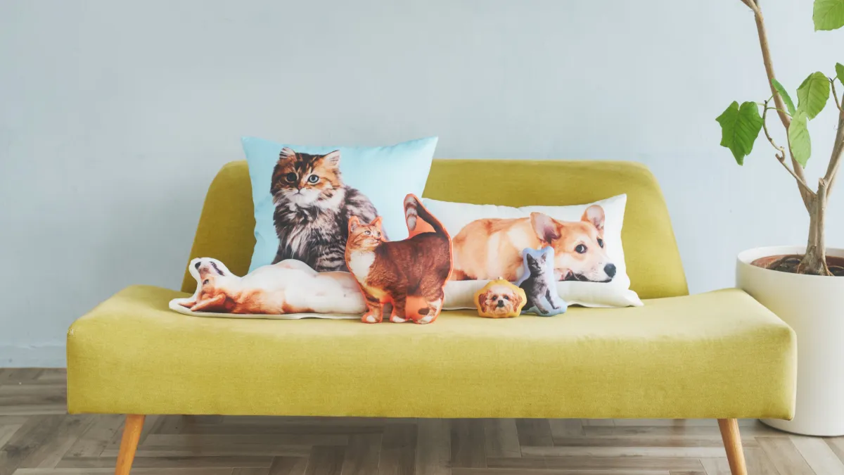 さらに、肌触りの良いポリエステル生地を使用したオーダーメイドクッションカバーは、ヌードクッション付きで3960円(税込)から。お部屋のインテリアとしても楽しめるため、ペットとの日常がより身近に感じられるアイテムです。