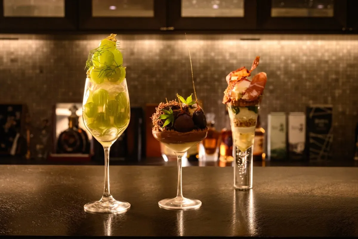 提供されるのは、フルーツパフェを超えた「大人の夜パフェ」。今回用意される3種類のパフェは、どれもお酒にぴったりなテイストが特徴です。フレンチレストラン「アッシュ」に併設されたバーで、特別感あふれる場所で皆様をお待ちしております。