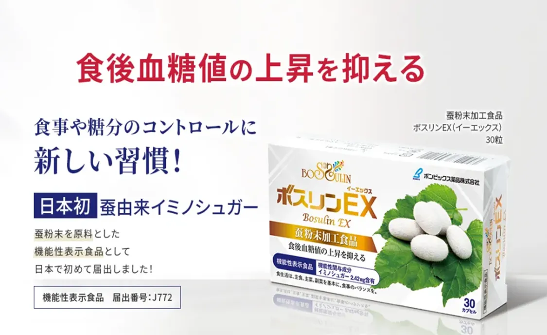ボンビックス薬品株式会社から、2026年3月3日に発売される新たな機能性表示食品「ボスリンEX(イーエックス)」が注目を浴びています。この製品の最大の特長は、蚕由来のイミノシュガーを使用している点です。従来のイミノシュガーは桑の葉などの植物から得られるものでしたが、今回初めて蚕から抽出された成分を活用することで、より健康志向の高い商品が誕生しました。