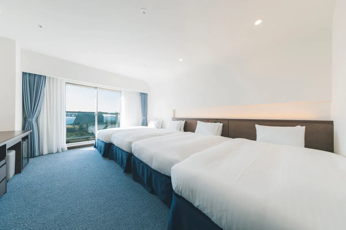 このコネクティングルームは、スーペリアツインルーム(31㎡)が2部屋、内側のドアで繋がれており、プライバシーは確保しつつも大人数が集まる楽しさを体験できる設計になっています。エキストラベッドを各部屋に2台ずつ追加することにより、最大8名で宿泊可能なので、家族旅行や友人との集まりに最適です。