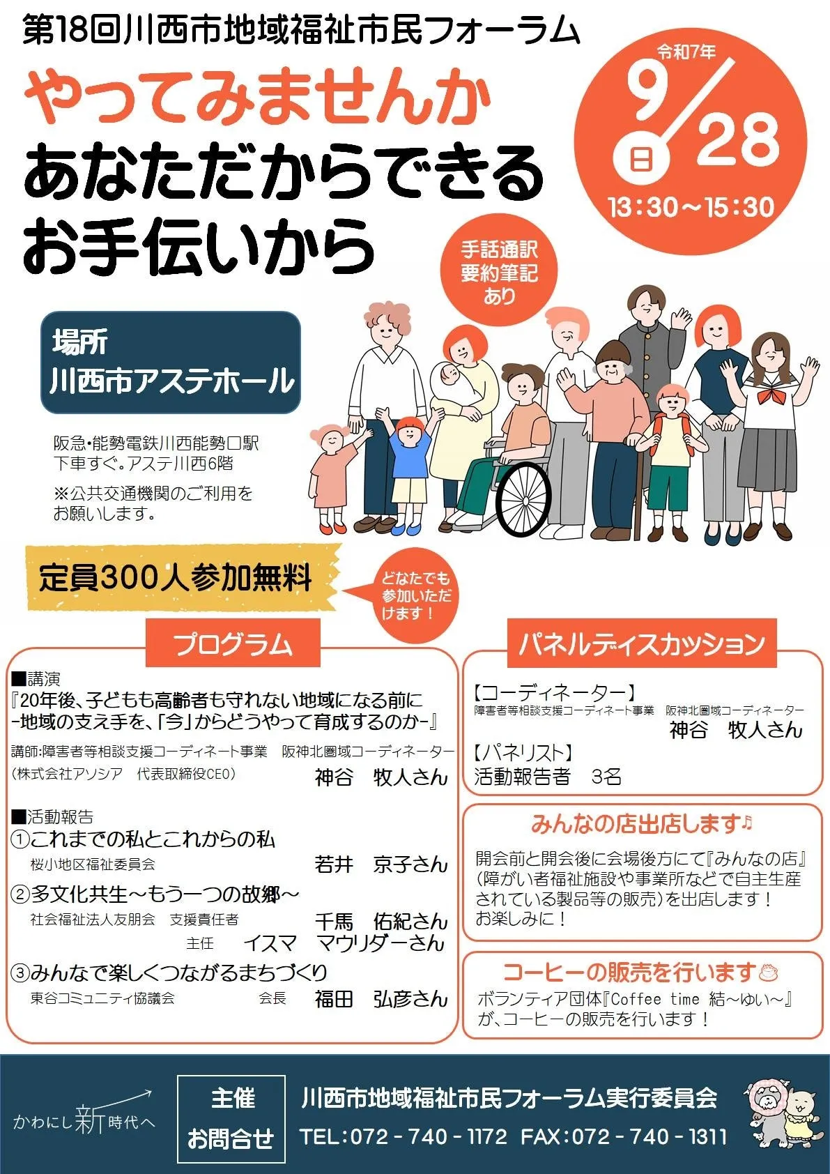 地域での活動に興味がある方、また既に何らかの形で地域支援に携わっている方は、ぜひこの機会を活用してみてください。川西市の未来を一緒に考え、新たなつながりを築く良いチャンスです。皆様のご来場を心よりお待ちしております。