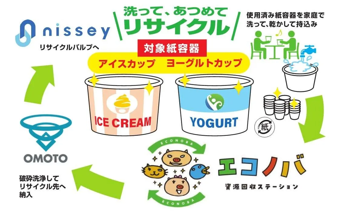 この実証実験は、神戸市のエコノバに設置された「ふたば」と「はづま」という2つの拠点で行われます。期間は2026年1月6日から3月31日までで、家庭で洗浄した後の紙製食品容器を持ち込む形で行います。具体的には、使用済みのアイスクリームやヨーグルトの容器を対象とし、中身を空にして、汚れがついていない状態を保つことが求められます。