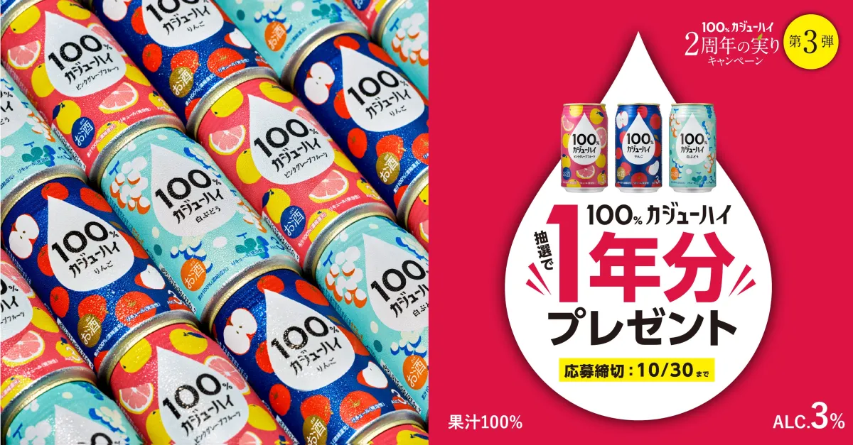「100%カジューハイ」の2周年を祝う、このキャンペーンへの参加は、贅沢な果実感を堪能できるかたがたにとって絶好のチャンスです。ぜひ公式Xアカウントをフォローし、多くの皆さんのご応募をお待ちしています。今後も新しい情報やイベントなどをチェックして、楽しい時間をお過ごしください!
