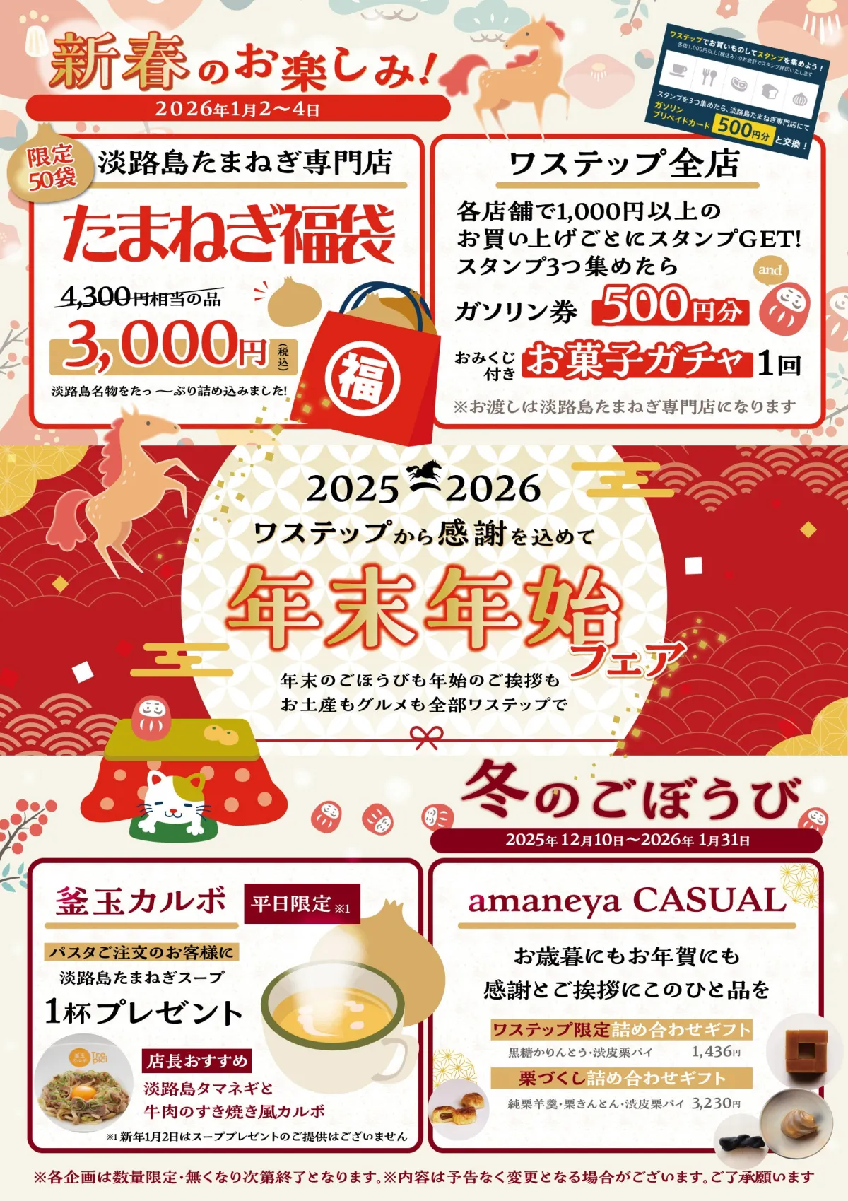 淡路島に新たに登場したフード&ショッピングモール「waSTEP AWAJISHIMA」が、2026年1月2日から4日まで感謝を込めて「年末年始フェア」を開催します。この機会に、淡路島の魅力を満喫しながら、嬉しい特典を手に入れるチャンスです。