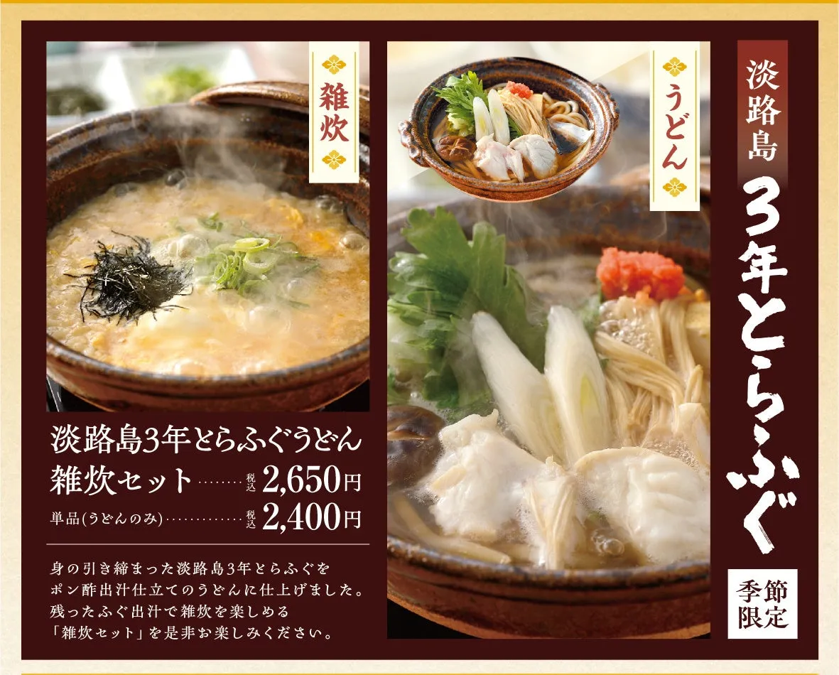 - 淡路島3年とらふぐうどん雑炊セット 2,650円(税込)